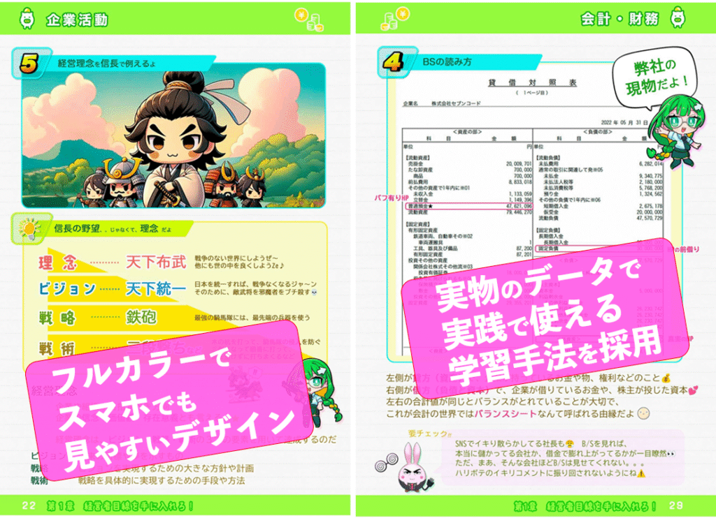 はい!フルカラーで、わかりやすくを最優先に、クスッと笑える小ネタや、試験のための勉強ではなく、実践でも使える参考例とかも入れるようにして、唯一無二の参考書になっているかと思います。